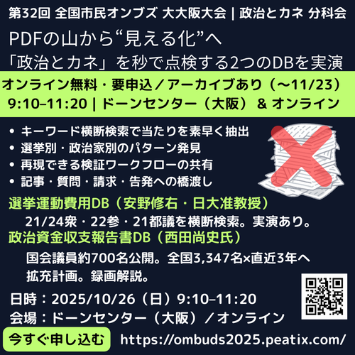 調査を担当した名古屋市民オンブズマン事務局の内田隆は、「これまで政治資金パーティーをめぐっての裏金が議論されてきた。