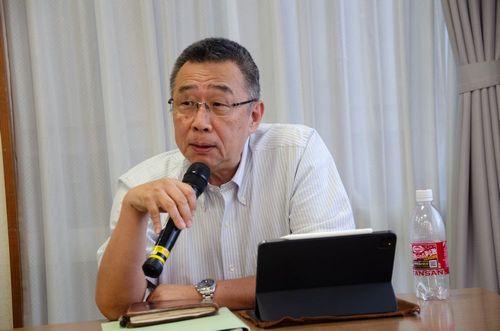 100万円を目標に訴訟費用のクラウドファンディングを行っていると述べる、事務局長の北村栄弁護士
